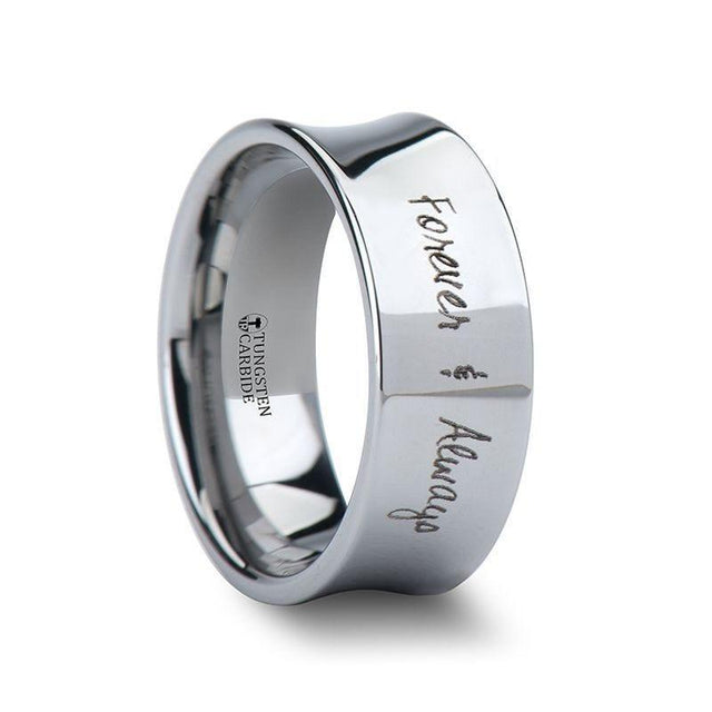 Tungsten Forever & Always Handwritten Engraved Concave Ring Polished - 4mm - 8mm