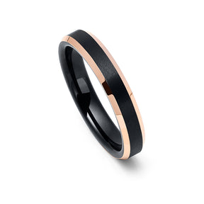 4mm - Rose Gold Tungsten Carbide Wedding Band Shinny Beveled Edges Brushed Black Center
