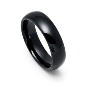 6mm - Mens Black Tungsten Wedding Band, High Polished Dome Shape