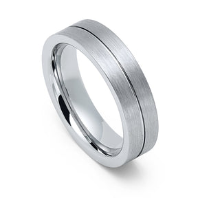 6mm - Mens Tungsten Wedding Band, Flat Grooved Center, Brushed side
