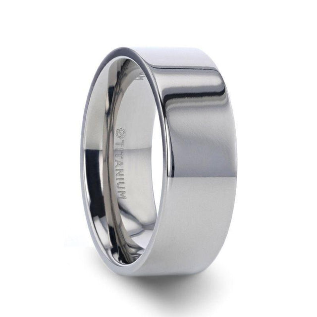HARDY Polished Finish Flat Style Men's Titanium Wedding Ring - 6mm & 8mm
