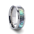 KAUI Titanium Polished Finish Mother Of Pearl Inlaid Mens Beveled Wedding Band - 6mm & 8mm