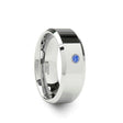 A luxurious .06 carat round cut Blue Diamond with a White Gold bezel is set into this flat-profiled and bevel-edged Tungsten Carbide wedding band design by Thorsten.