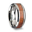KHAYA Tungsten Band with Polished Bevels and Real Hardwood Mahogany Inlay - 4mm - 10mm