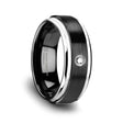 MONARCH Black Ceramic Wedding Band with Diamond, Polished Beveled Step Edges, & Raised Brush Center - 6mm & 8mm