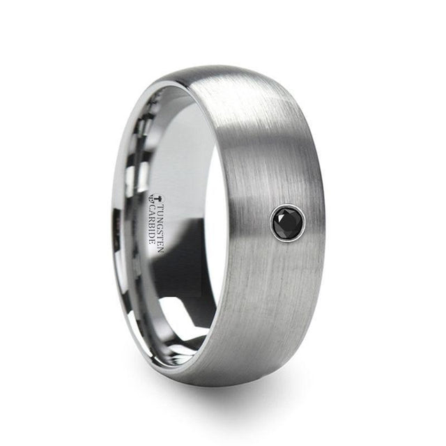 PERSEID Tungsten Carbide Brushed Finish Domed Ring with Black Diamond - 6mm & 8mm