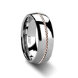 This line of elegant Comfort Fit Domed Tungsten Rings is made from high grade cobalt-free Tungsten Carbide. It combines the beautiful grayish color of Tungsten Carbide with a woven 14k Rose Gold inlay in the center of the band.
