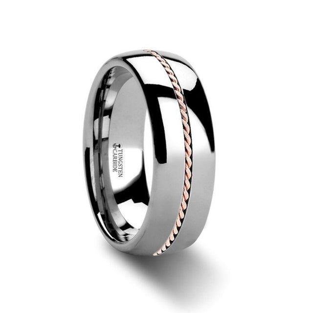 ROSSMOOR Braided 14k Rose Gold Inlay Domed Tungsten Ring - 6 mm & 8 mm