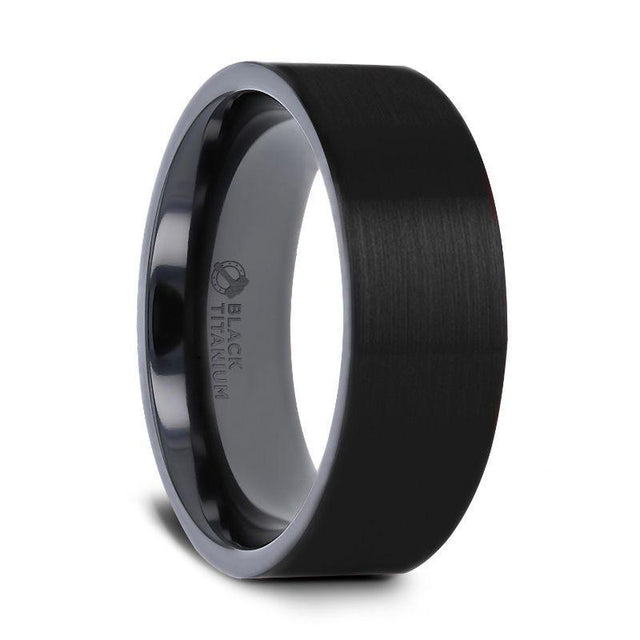 SAN BERNARDINO Brushed Finish Flat Black Titanium Men's Wedding Band - 6mm & 8mm