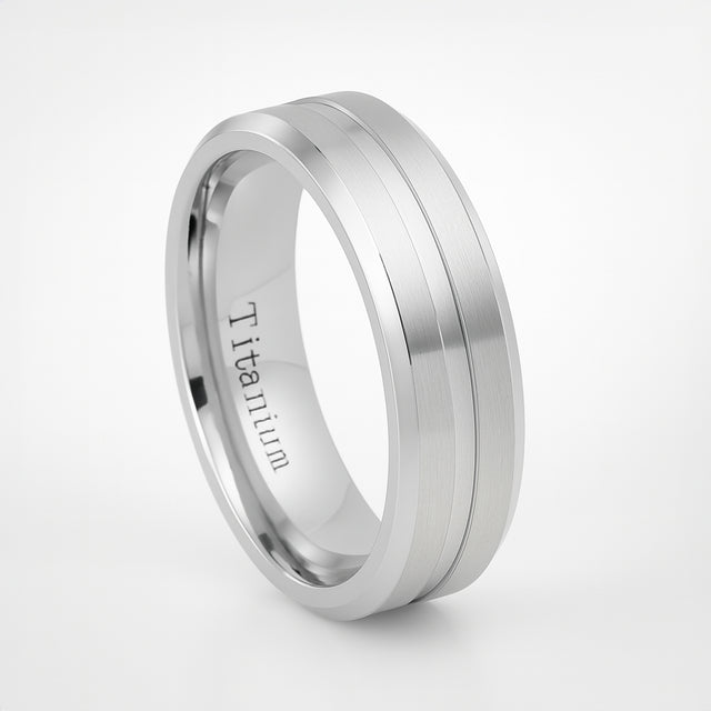Silver Titanium Grooved Center Beveled Edged Ring - 7mm