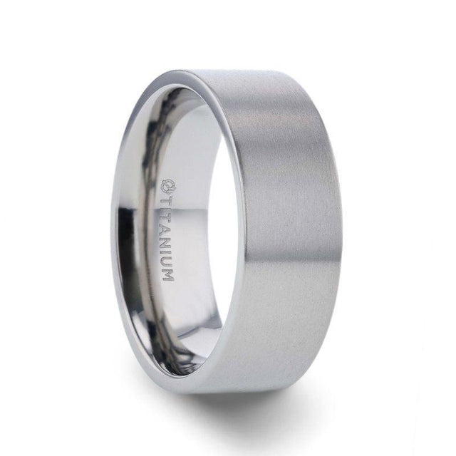 SOLAR Flat Profile Brushed Finish Mens Titanium Wedding Band - 6mm & 8mm