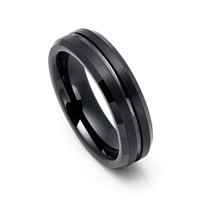 6mm - Black Tungsten Carbide Wedding Band Black Center Groove
