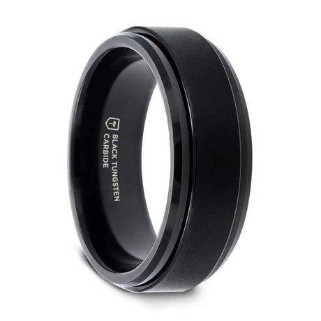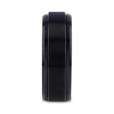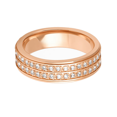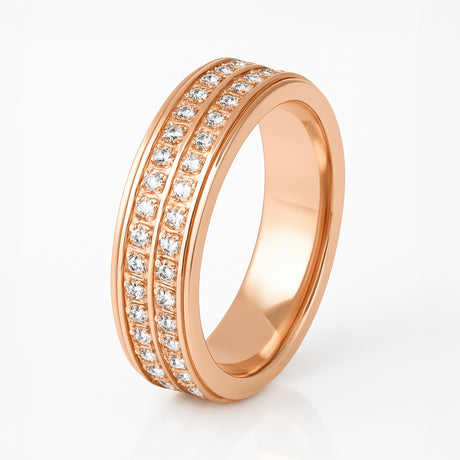 Rose Gold Titanium Ring Full Eternity White Cubic Zircon Diamonds Stepped Edges 6mm