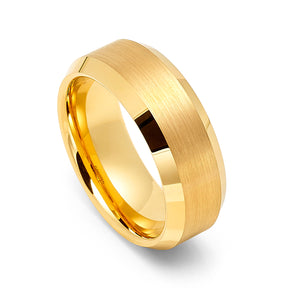 8mm - 14k Yellow Gold Tungsten Carbide Band Beveled Edges Brush Center