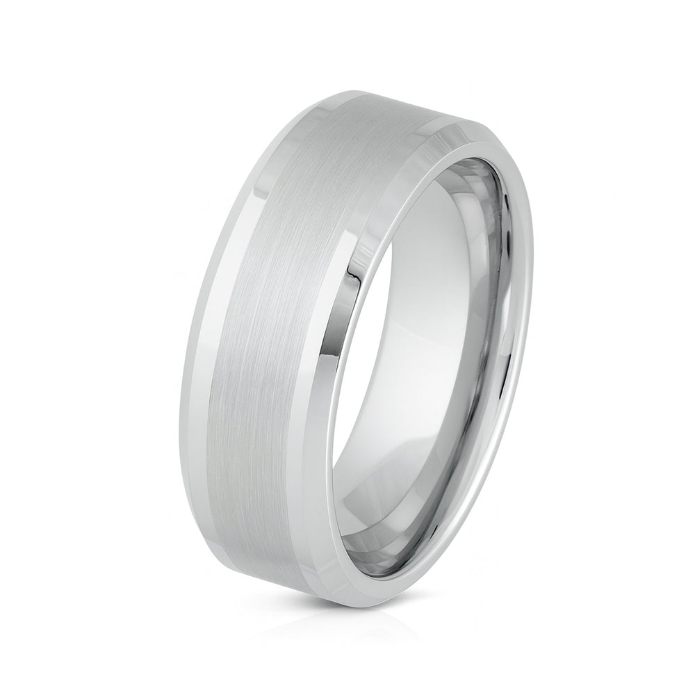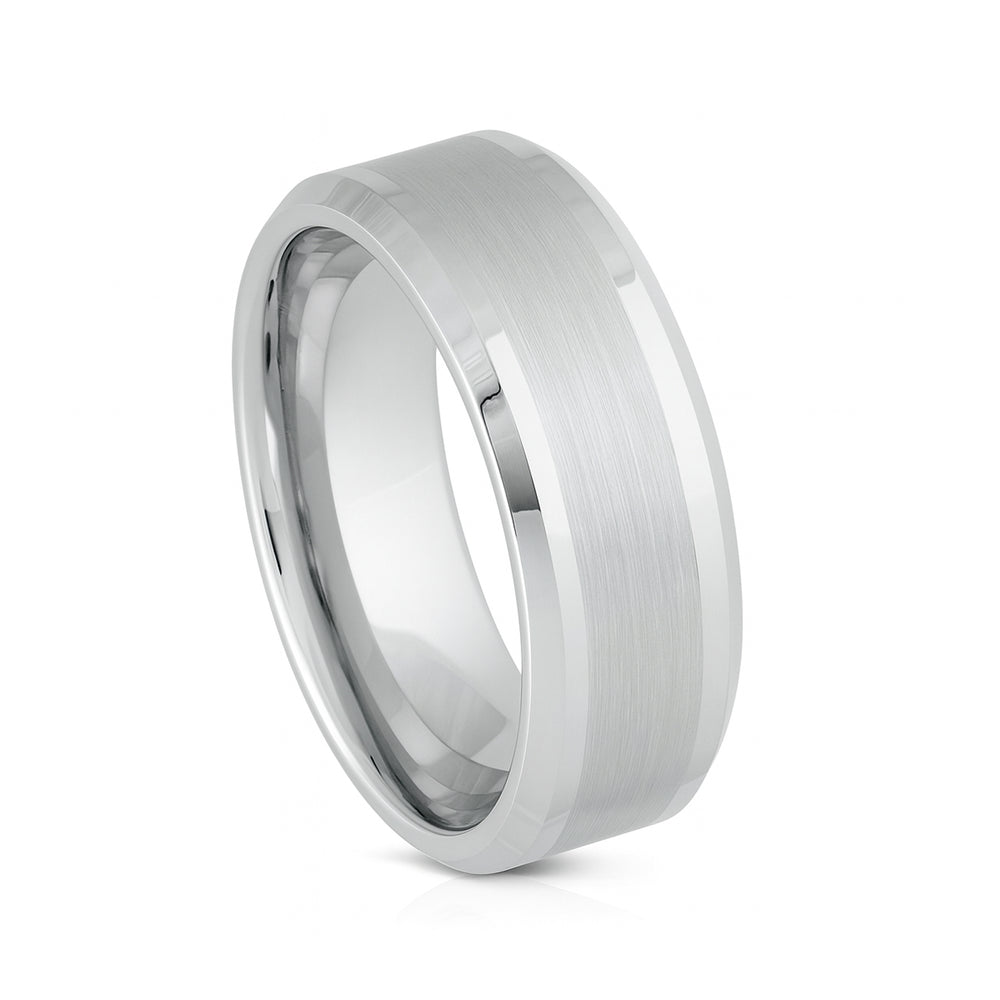 White Silver Platinum-Like Finish Tungsten Ring with Brushed Center and Polished Beveled Edges-8mm - 7 / Silver / Tungsten Carbide is backordered and will ship as soon as it is back in stock.