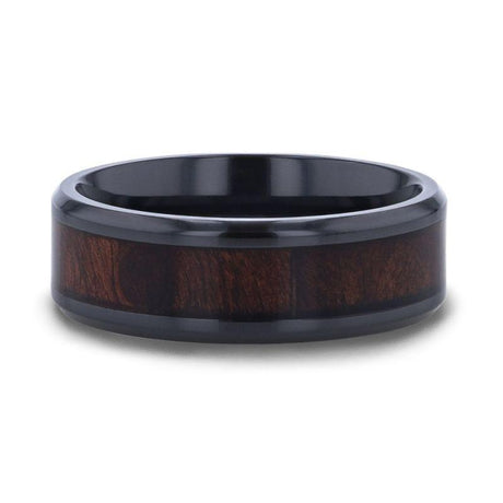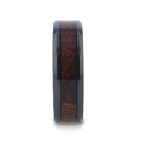 Yellow Gold Titanium Ring with Gold Celtic Design Over Rosewood Inlay – 9mm