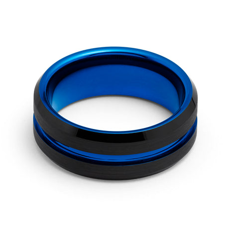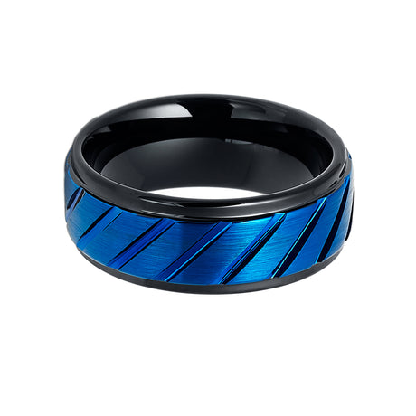 8mm Blue and Black Grooved Tungsten Carbide Wedding Band