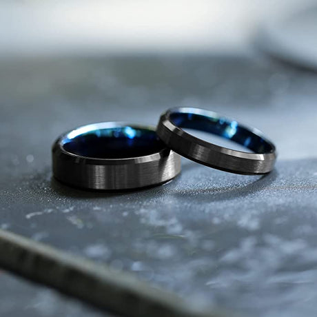 6mm - Tungsten Black & Blue Ring, Brushed Finished, Beveled Edges
