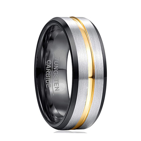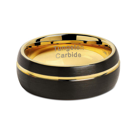 8mm - Men's Tungsten Ring, Gold & Black Wedding Band, Brushed Groove Ring, Comfort Fit