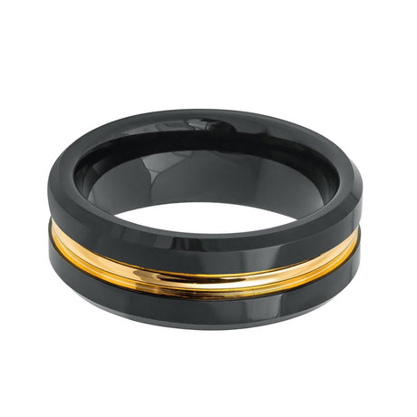 8mm Black Tungsten Wedding Band With Yellow Gold Grooved Center