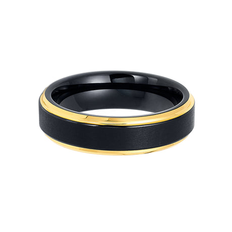 6mm - Tungsten Black & Gold Wedding Band, Gold Stepped Edges, Brushed Ring