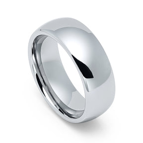 8mm - Silver Tungsten Carbide Wedding Band High Polished Dome Shape Ring