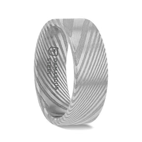 XANDER Grey Flat Brushed Damascus Steel MeNs Wedding Band with Vivid Etched Design- 6mm & 8mm