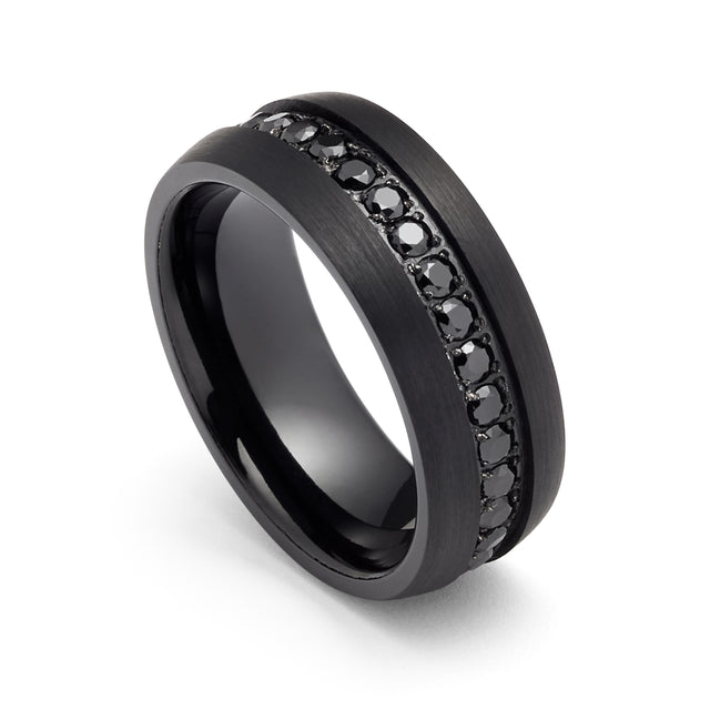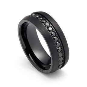 8mm Black Tungsten Wedding Band with Black Sapphires