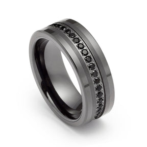 8mm - Mens Gunmetal Tungsten Wedding Band, Brushed CZ Diamonds, Tungsten Ring