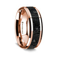 14K Fine Rose Gold Polished Wedding Ring W/ Lava Inlay Beveled Edges - 8 mm