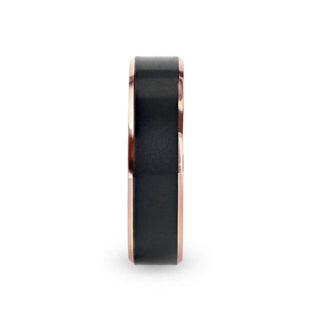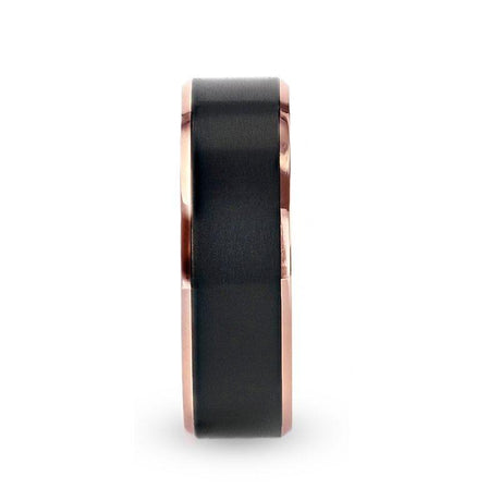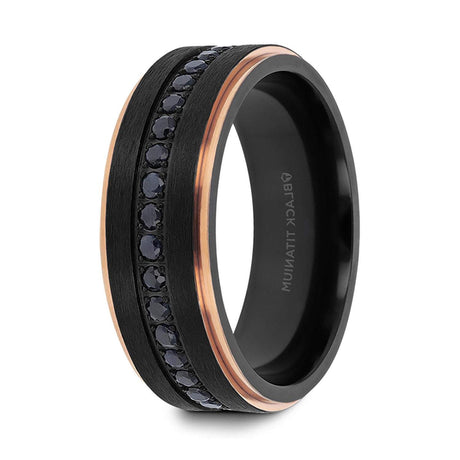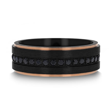 8mm ASTRO Brushed Black Titanium Ring W/ Rose Gold Edges & Black Sapphire all around