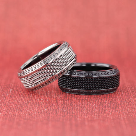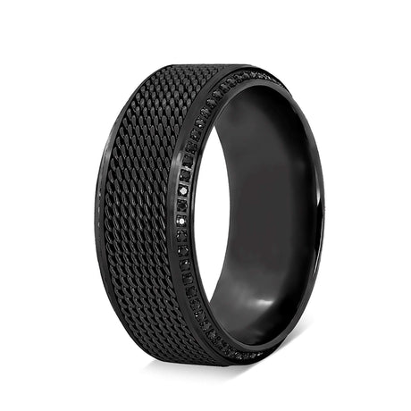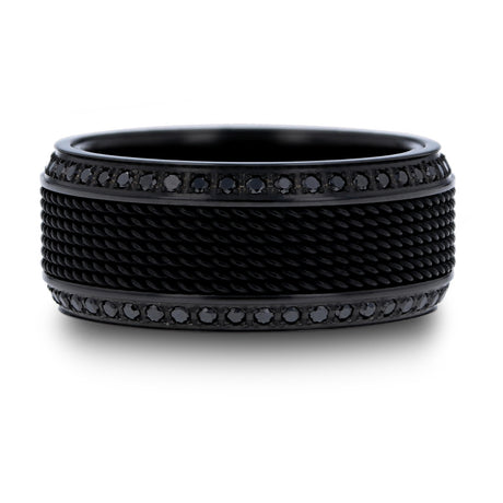 10mm KNIGHT Steel Chain Black Titanium Wedding Ring with Round Black Diamonds