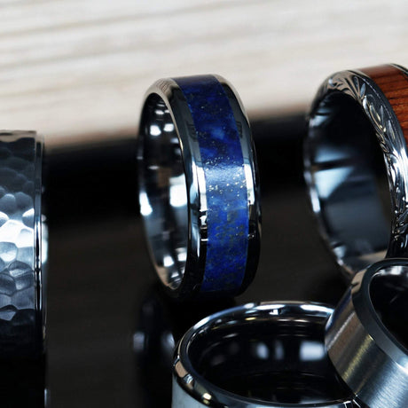$239.99Unit price /UnavailableMen's Titanium Wedding Band with Blue Lapis Lazuli Stone Inlay Ring, Beveled Edges - 8 mm
