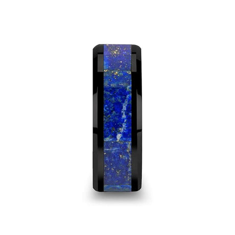 MARLOW Black Ceramic Wedding Band W/ Blue Lapis Inlay & Beveled Edges - 8mm