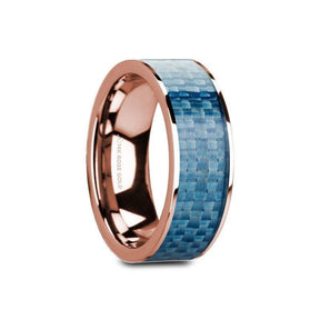 GANESH Flat 14K Rose Gold with Blue Carbon Fiber Inlay and Polished Edges - 8mm