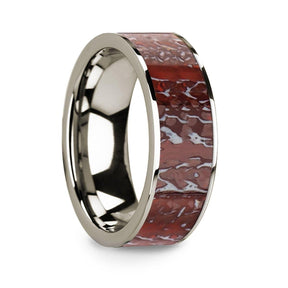 Flat 14k White Gold with Red Dinosaur Bone Inlay - 8mm