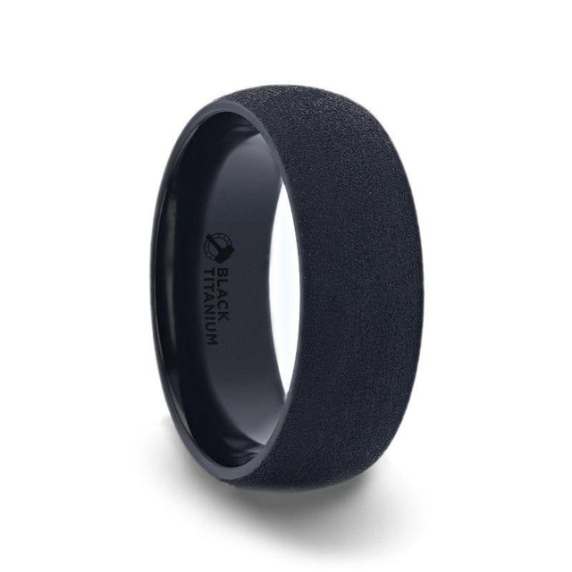 CIMMERIAN Domed Black Titanium Men's Wedding Band With Sand Blasted Finish - 8mm