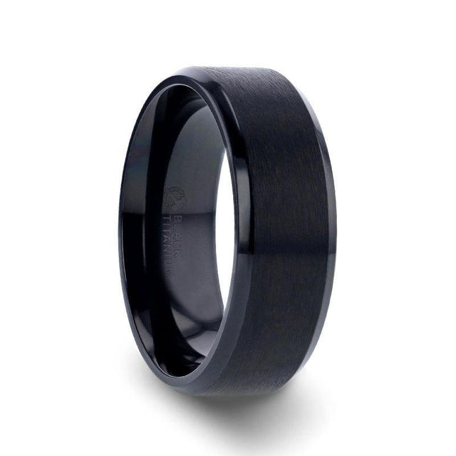 ELYSIAN Black Titanium Ring with Polished Beveled Edges and Brush Finished Center - 8mm