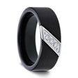 LIAM Flat Black Satin Finished Tungsten Carbide Wedding Band with Diagonal Diamonds Set in Stainless Steel - 8 mm