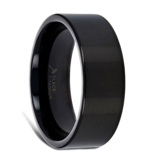 The sleek flat style of Black Titanium Ring are subtle yet striking. This ring can be worn as a Wedding Band or Promise Ring and is available in 8mm. Pictures of all available widths can be seen here.