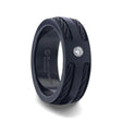 NOIR Double Black Rope Inlaid Brushed Matte Black Titanium Men's Wedding Band With Black Edge Channel Setting And White Diamond In The Center - 8mm