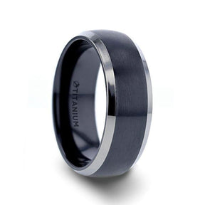 NOLAN Brushed Dome-Profile Black Titanium Wedding Band with Polished Titanium Edges - 8mm