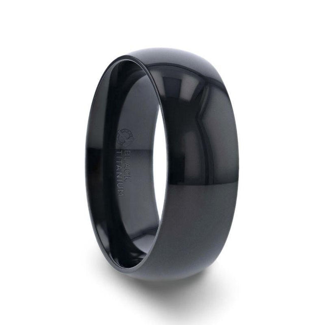 VAREN Black Titanium Polished Finish Mens Domed Wedding Band - 8mm