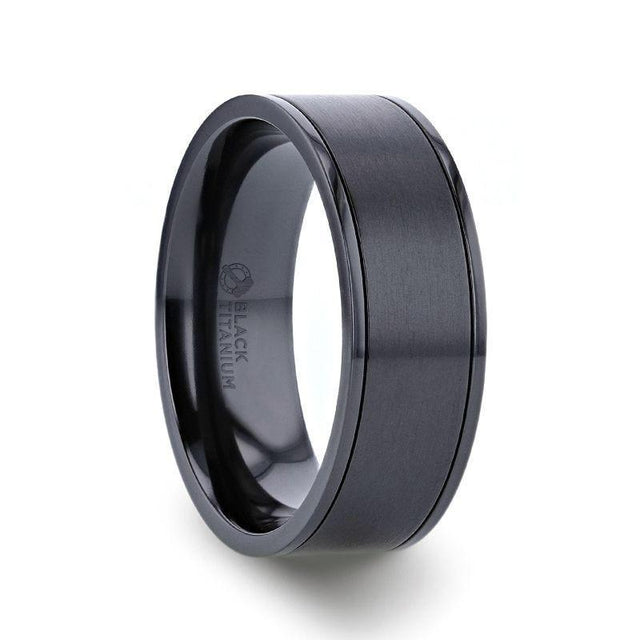 WOLFGANG Black Titanium Brushed Finish Mens Wedding Ring with Polished Dual Offset Grooves 6mm & 8mm
