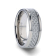 TANTALUS Beveled Edge Titanium Ring with White Carbon Fiber Inlay - 8mm High tech carbon fiber is joined together with the durability of Titanium in this line of White Carbon Fiber Wedding Bands. This comfort fit wedding band is a flat style with beveled edges. The white carbon fiber is inlaid seamlessly into the center and then an extremely scratch resistant resin is applied over it to protect the carbon fiber from wear. -This ring is available in an 8mm width. -Truly Free Lifetime Sizing and Lifetime Warranty on all Titanium rings, no exchange sizing fees, which are charged by our competitors. -Titanium is just as strong and durable as Tungsten rings.