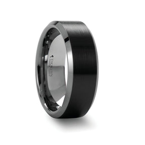 ARDEN Beveled Edged Tungsten Ring with Brushed Finish Black Ceramic Center - 6mm or 8mm
