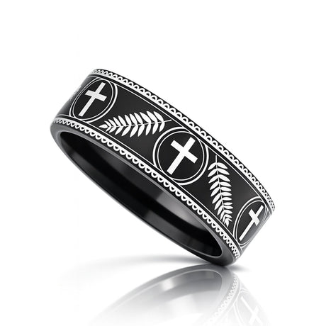 Regular price $150.00Unit price /UnavailableHAVEN Flat Titanium Ring with Engraved Cross Pattern - 8mm
