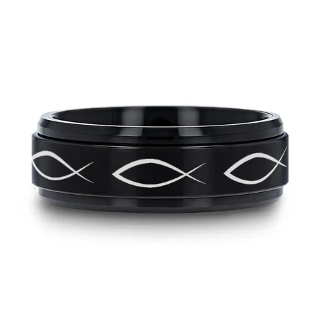 Regular price $355.00Unit price /UnavailableICHTHYS Spinning Religious Fish Black Tungsten Carbide Spinner Wedding Band - 8mm