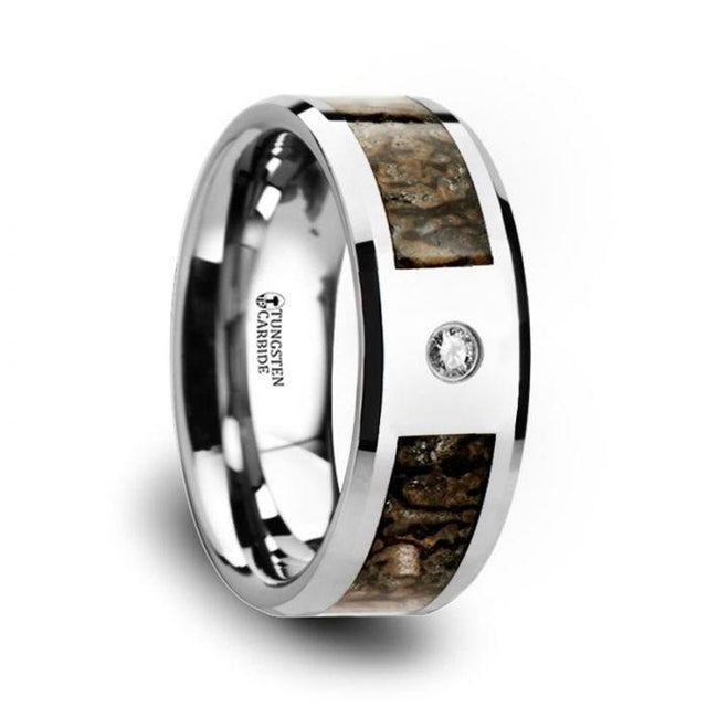 Brown Dinosaur Bone Tungsten Carbide Diamond Wedding Band