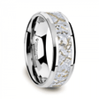 MESOZOIC Mens Tungsten Flat Beveled Wedding Ring with White Dinosaur Bone Inlay - 4mm & 8mm